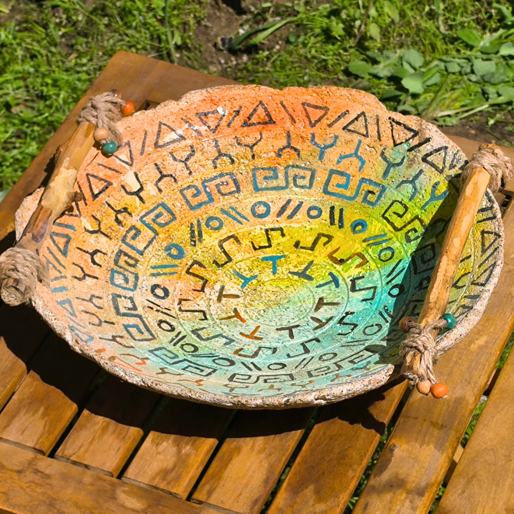 Κεραμική πιατέλα με ξύλινα στοιχεία - Κρυπτογραφημένος Δίσκος