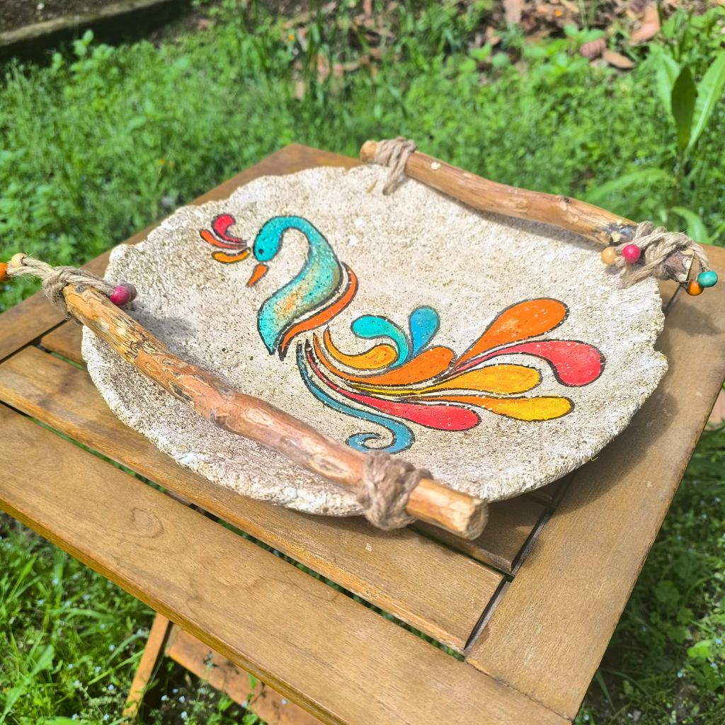 Κεραμική πιατέλα με ξύλινα στοιχεία - Παγώνι