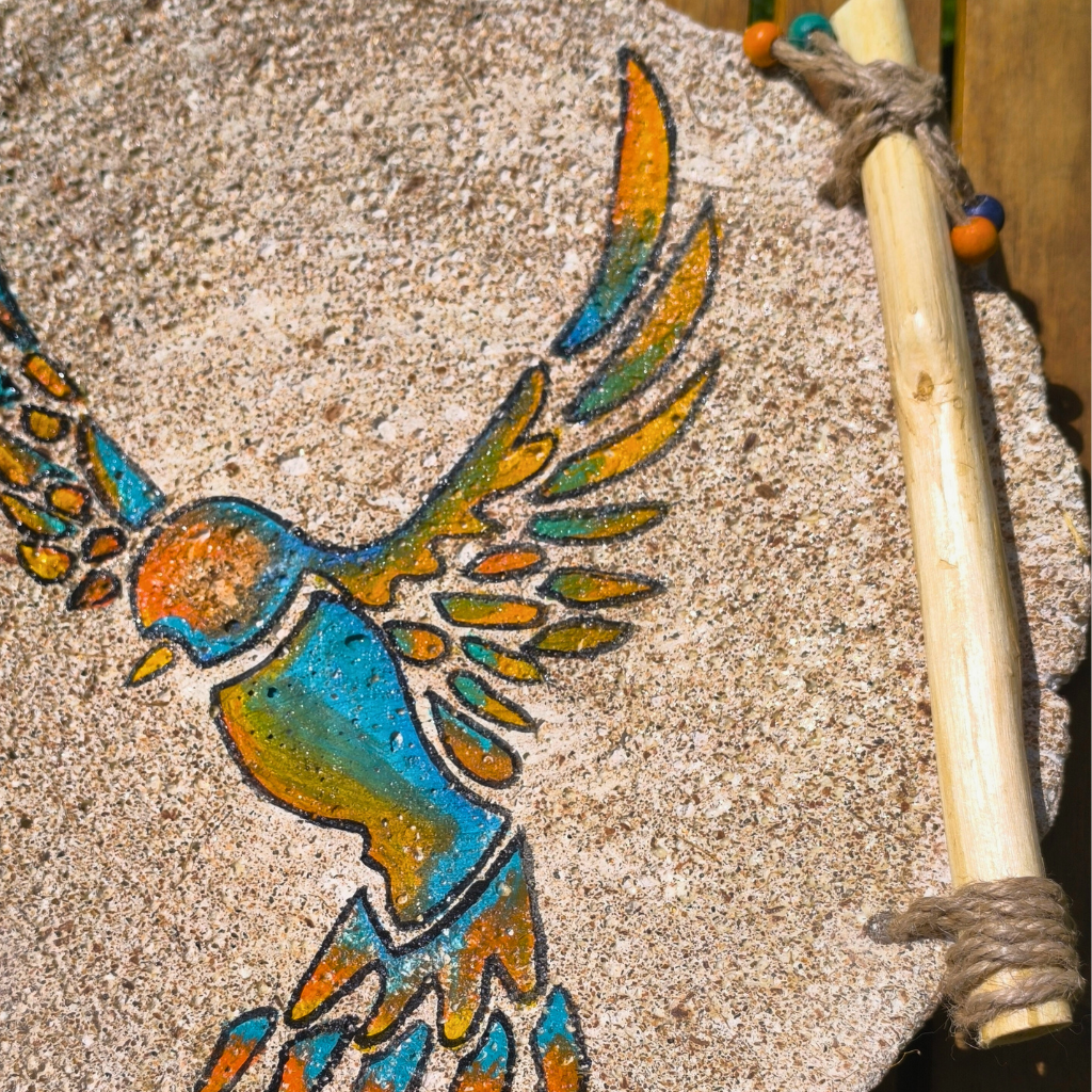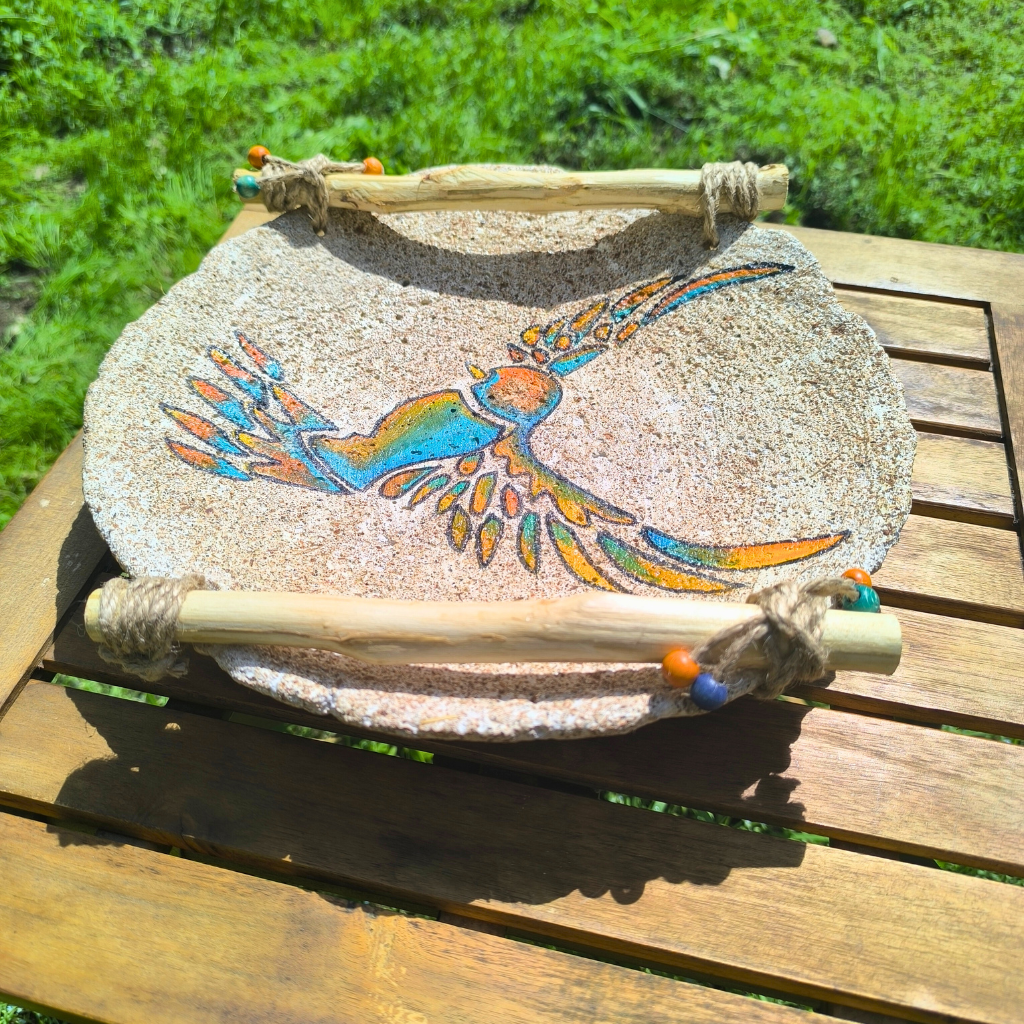 Κεραμική πιατέλα με ξύλινα στοιχεία - Πουλί