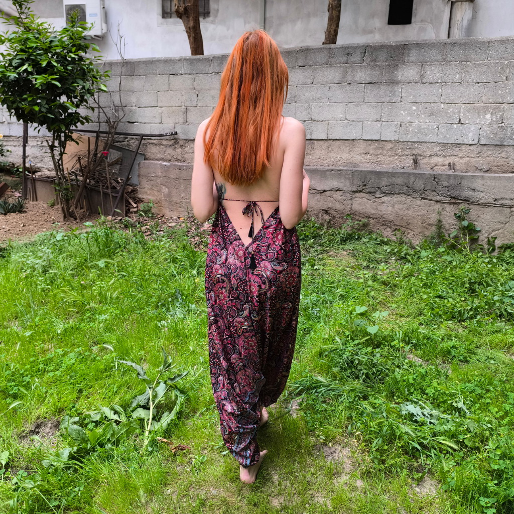 Ολόσωμη φόρμα μακρυά με δέσιμο στο λαιμό/πλάτη και ανοιχτή πλάτη